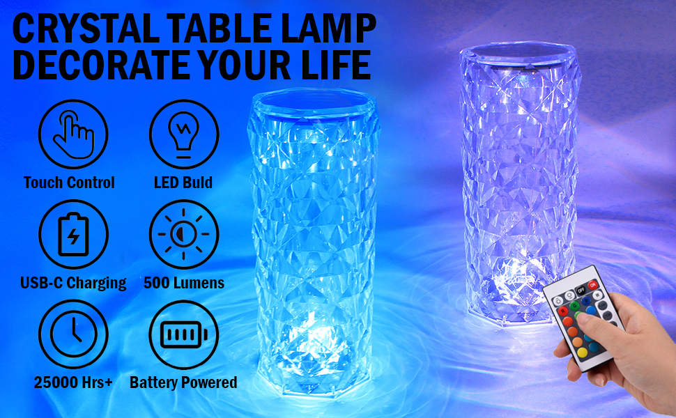 【Easy to Control Desk Lamp】 this crystal lamp offers two ways of operation, with the remote-controlled conveniently to turn on/off which allows you to control your lamp at a distance, and also can be controlled via touching the top of the lamp.