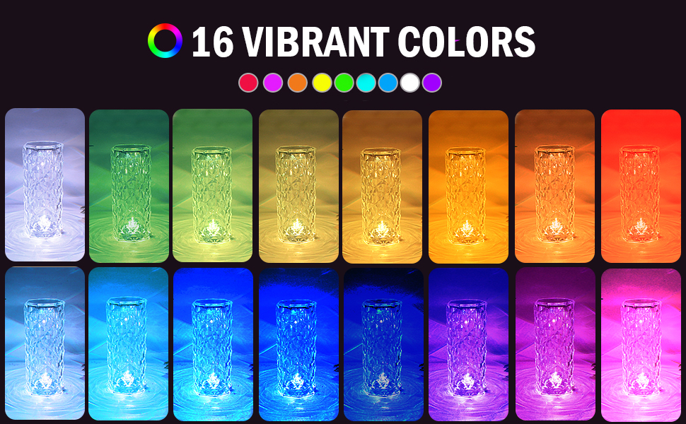 【Smart RGB Table Lamp】 The crystal bedside table lamp offers you 16 colors to adjust with 6 brightness from dark to bright. With 4 patterns of lighting those are smooth, fade, strobe, and flash. Which makes it the perfect lamp for decorating the room and creating an atmosphere.